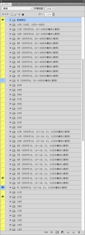 ※日付が1ケタ(1日〜9日)の場合、2ケタの場合で月を変更して使用して下さい。(Photoshopの基本操作ができる方であれば、簡単に調整できます。)